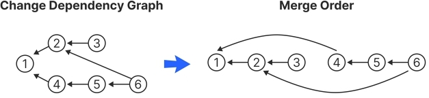 3.2.3 Directed Acyclic Graph (DAG) and Change Ordering. A DAG of changes defines a partial order between changes, expressed with their dependency links: a dependency change must have happened before the dependent change.