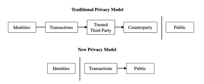The traditional banking model achieves a level of privacy by limiting access to information to the parties involved and the trusted third party. The necessity to announce all transactions publicly precludes this method, but privacy can still be maintained by breaking the flow of information in another place: by keeping public keys anonymous. The public can see that someone is sending an amount to someone else, but without information linking the transaction to anyone. This is similar to the level of information released by stock exchanges, where the time and size of individual trades, the "tape", is made public, but without telling who the parties were.