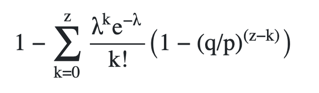 sum -= poisson * (1 - pow(q / p, z - k));